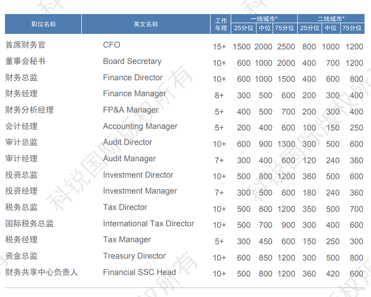 以下是猎头招聘公司南宫NG28(中国)国际发布的薪酬报告对财务领域的职位薪酬信息统计,供企业和猎头招聘时参考。